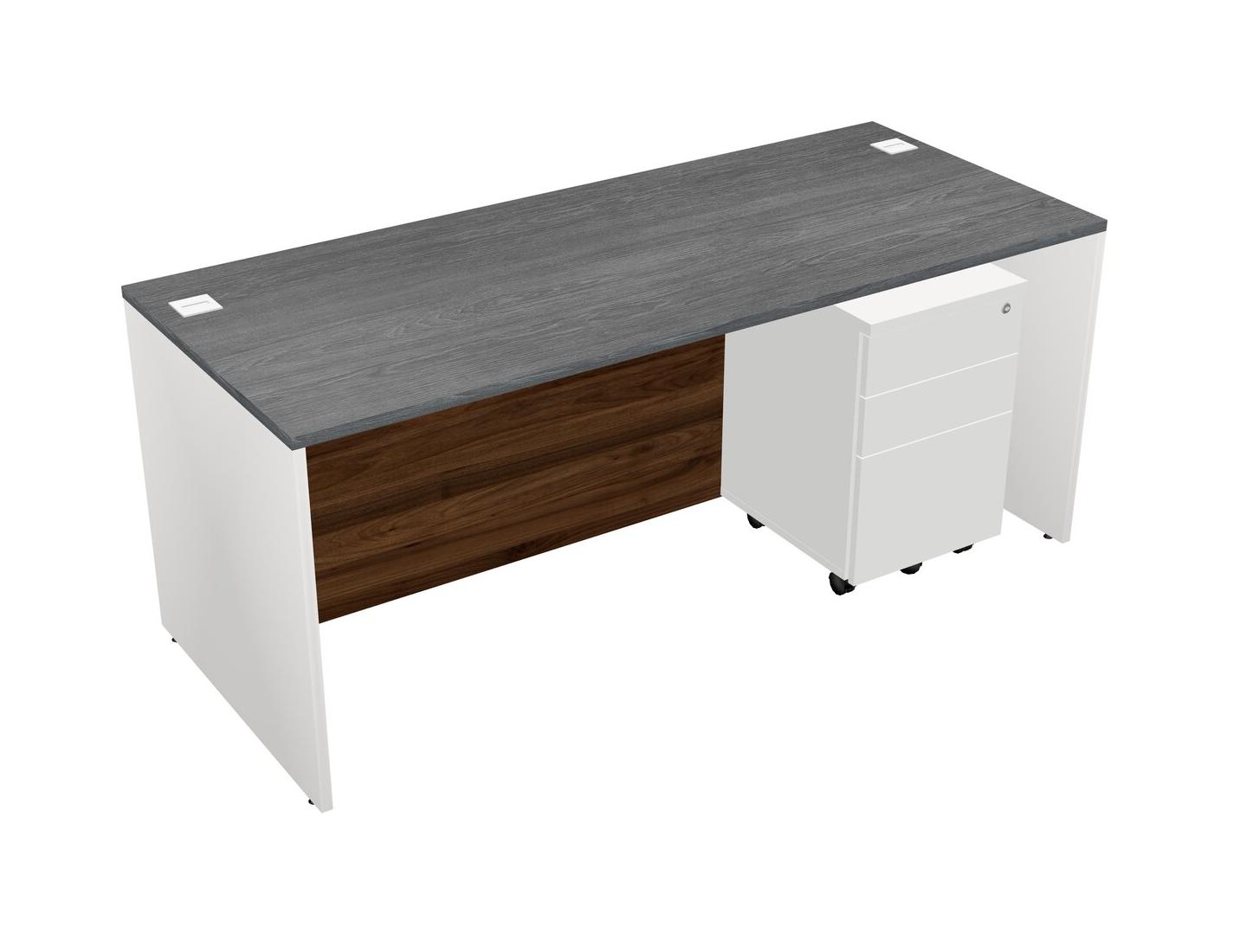 Grey Rectangular Office Desk Plus White Wooden Mobile Drawers
