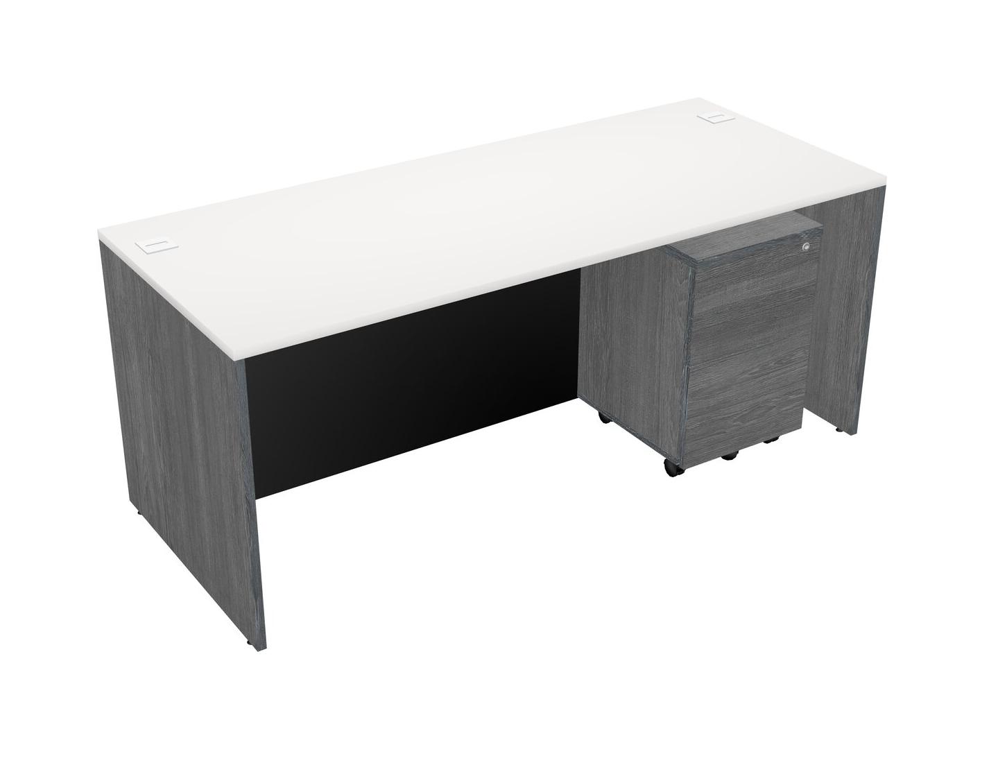 White Rectangular Office Desk Plus Grey Wooden Mobile Drawers