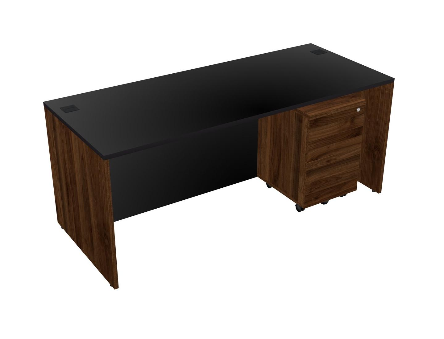 Black Rectangular Office Desk Plus Columbia Walnut Wooden Mobile Drawers