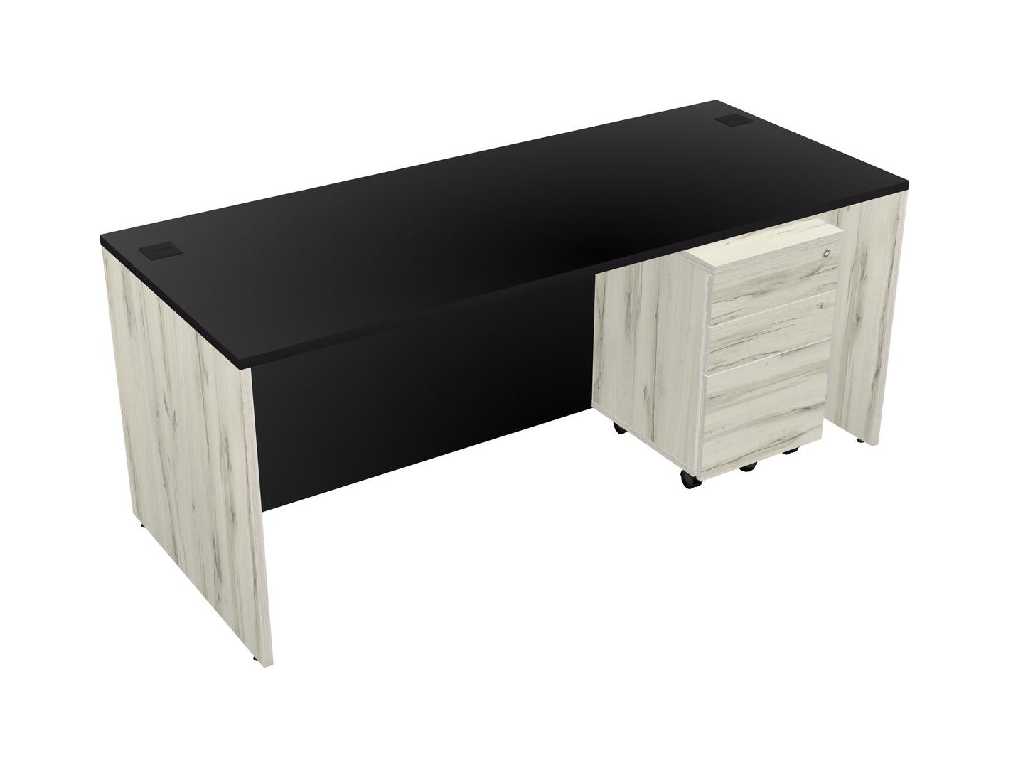 Black Rectangular Office Desk Plus Heinne Holz Wooden Mobile Drawers