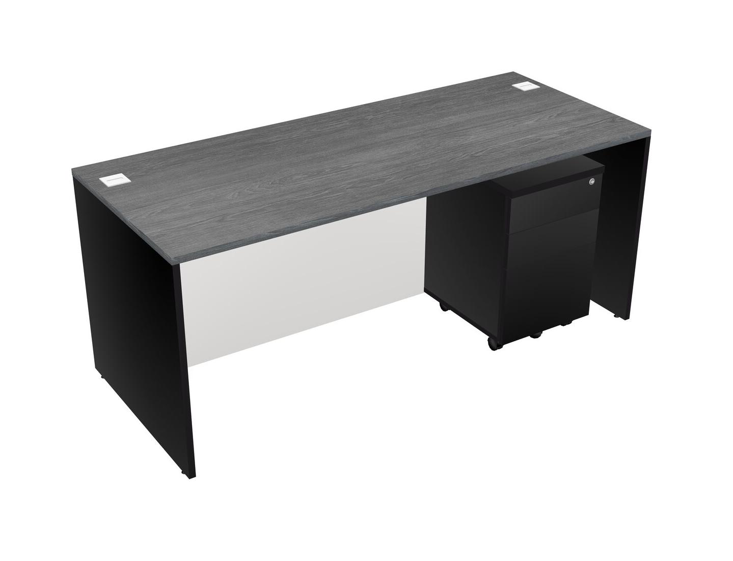 Grey Rectangular Office Desk Plus Black Wooden Mobile Drawers