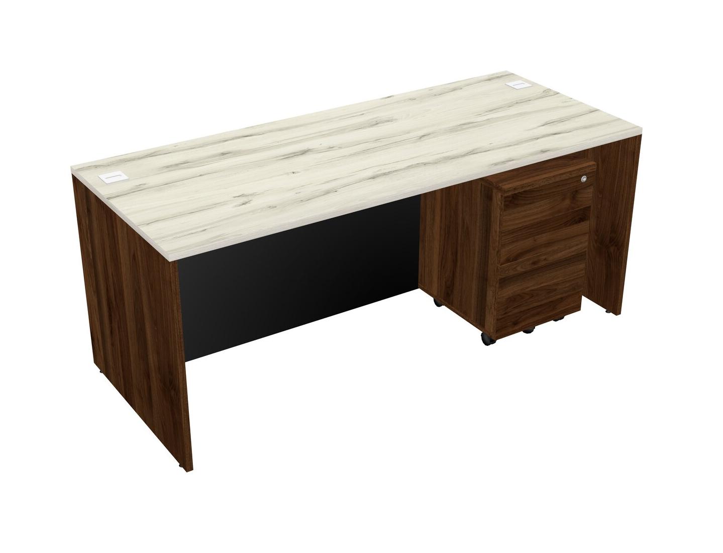 Heinne Holz Rectangular Office Desk Plus Columbia Walnut Wooden Mobile Drawers