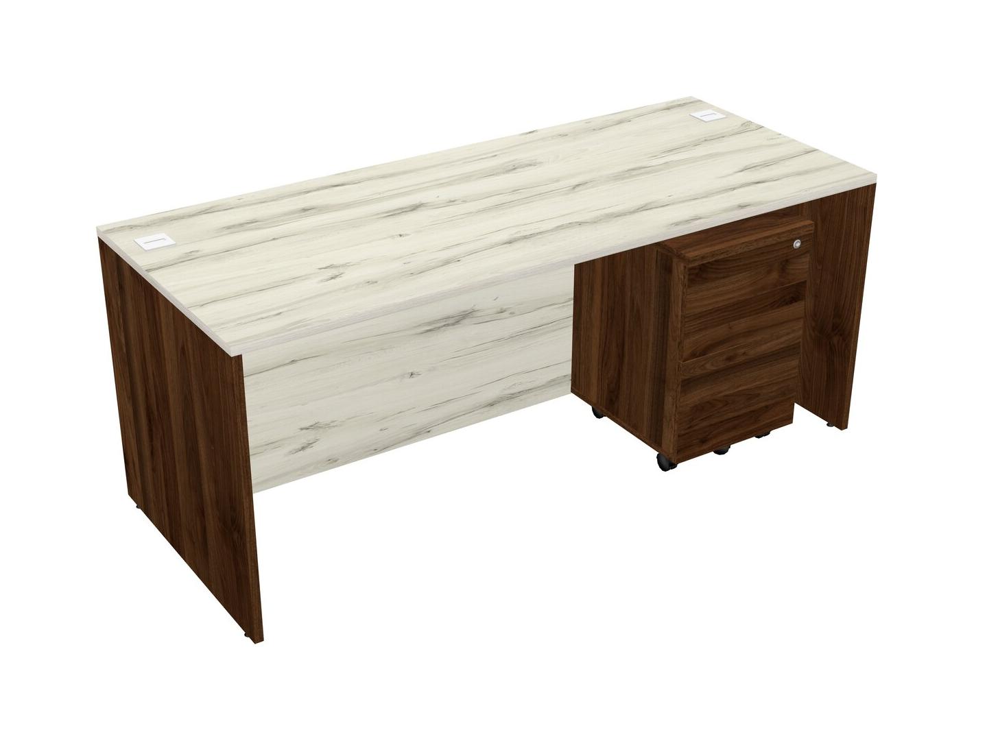 Heinne Holz Rectangular Office Desk Plus Columbia Walnut Wooden Mobile Drawers