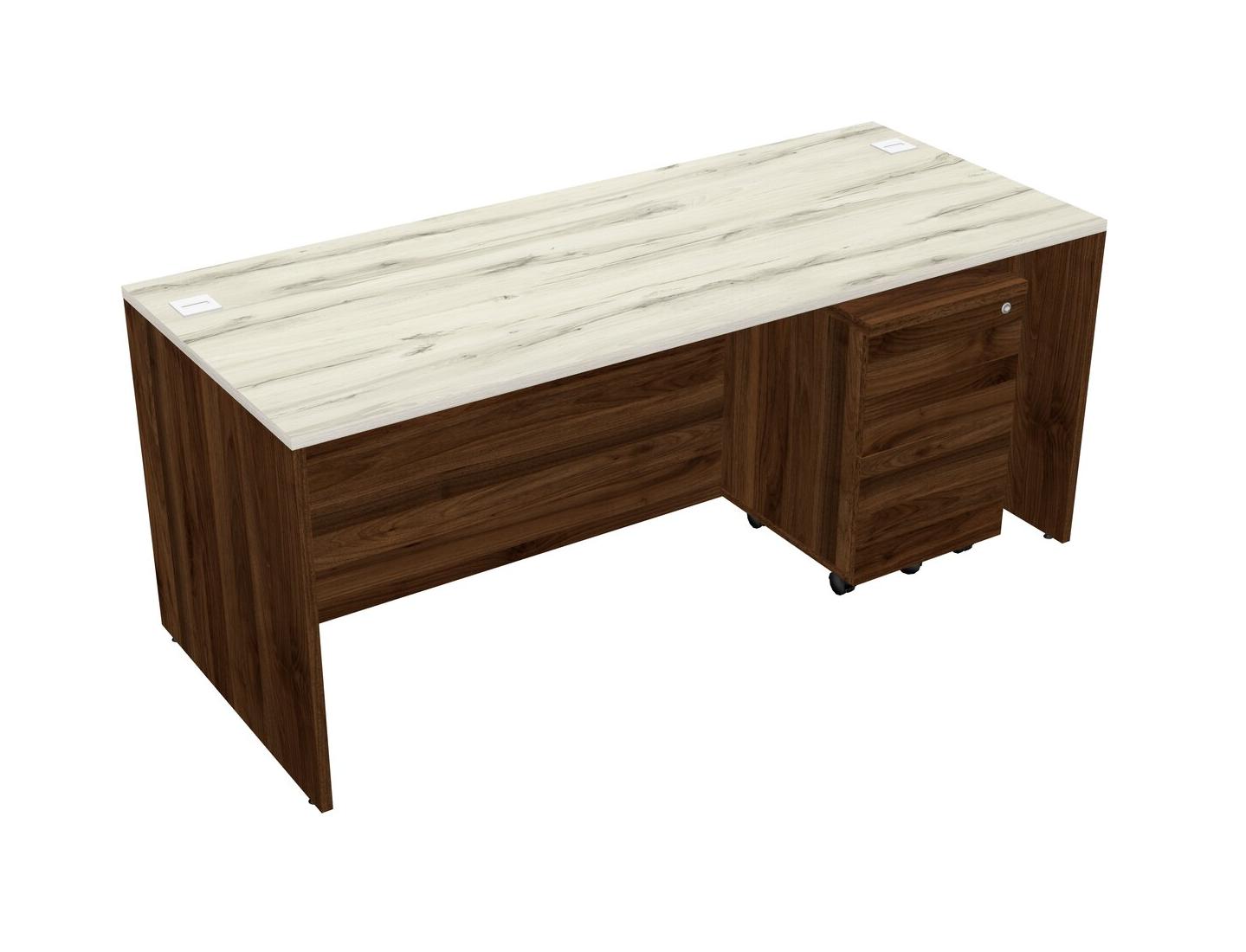 Heinne Holz Rectangular Office Desk Plus Columbia Walnut Wooden Mobile Drawers