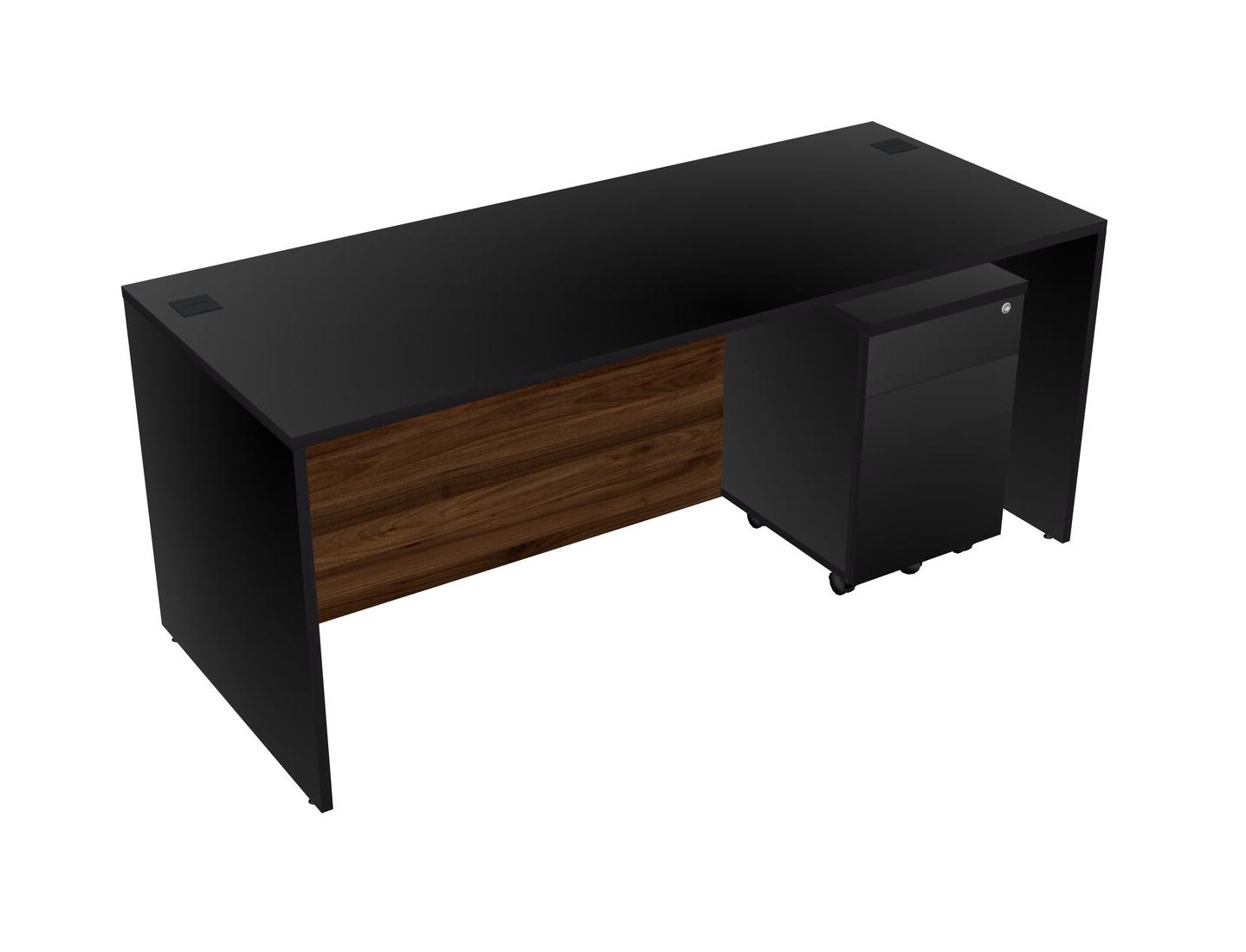 Black Rectangular Office Desk Plus Black Wooden Mobile Drawers