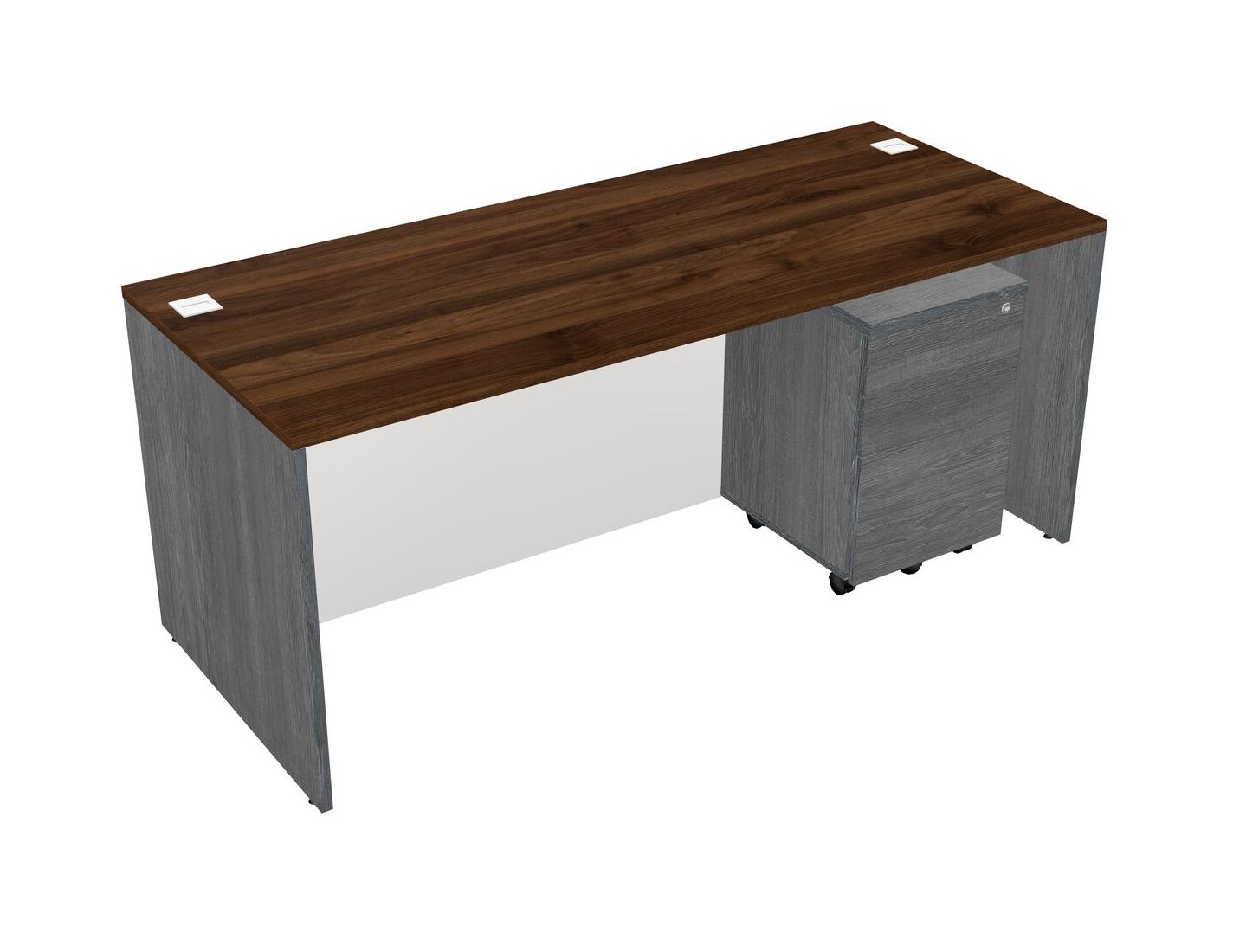 Columbia Walnut Rectangular Office Desk Plus Grey Wooden Mobile Drawers