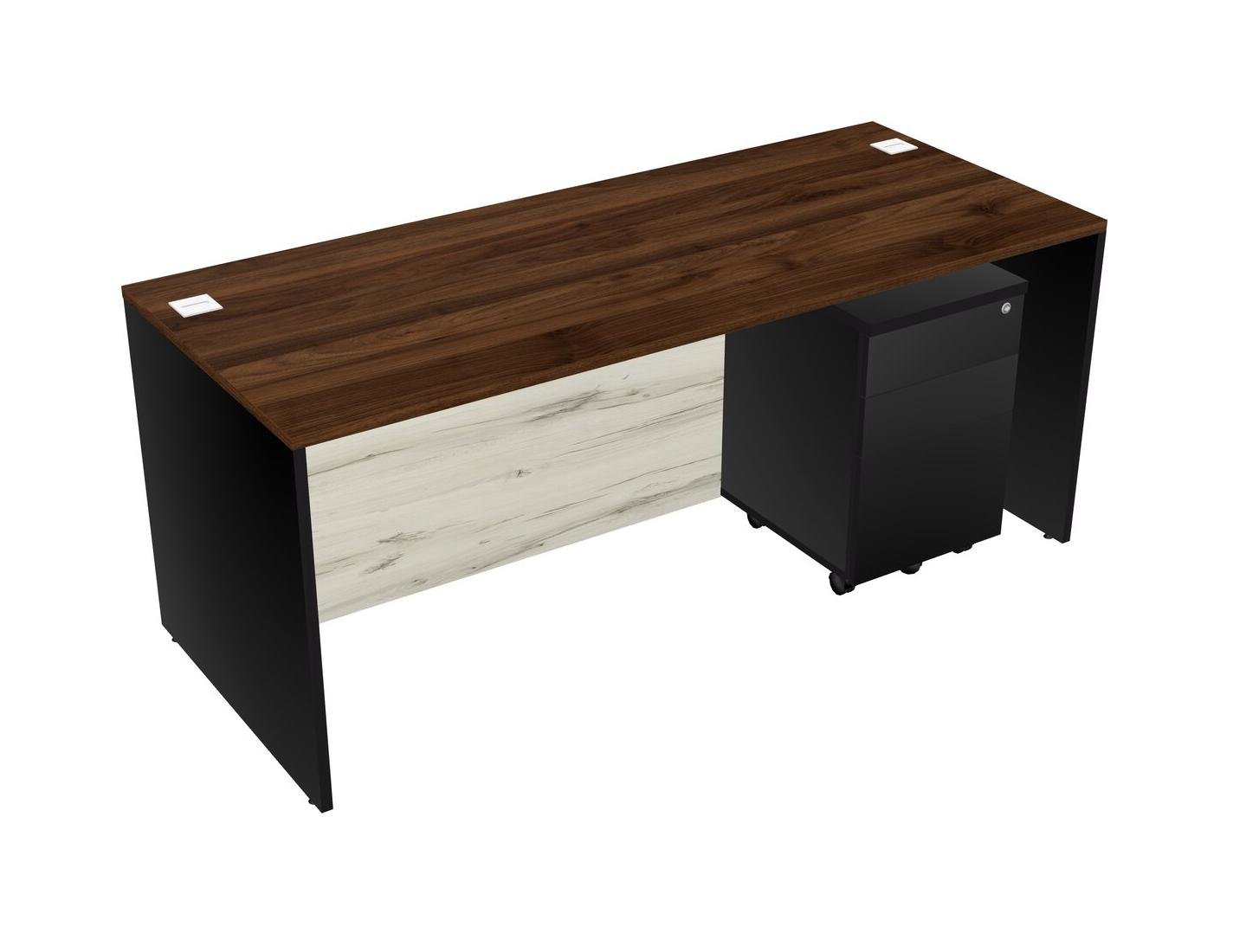 Columbia Walnut Rectangular Office Desk Plus Black Wooden Mobile Drawers