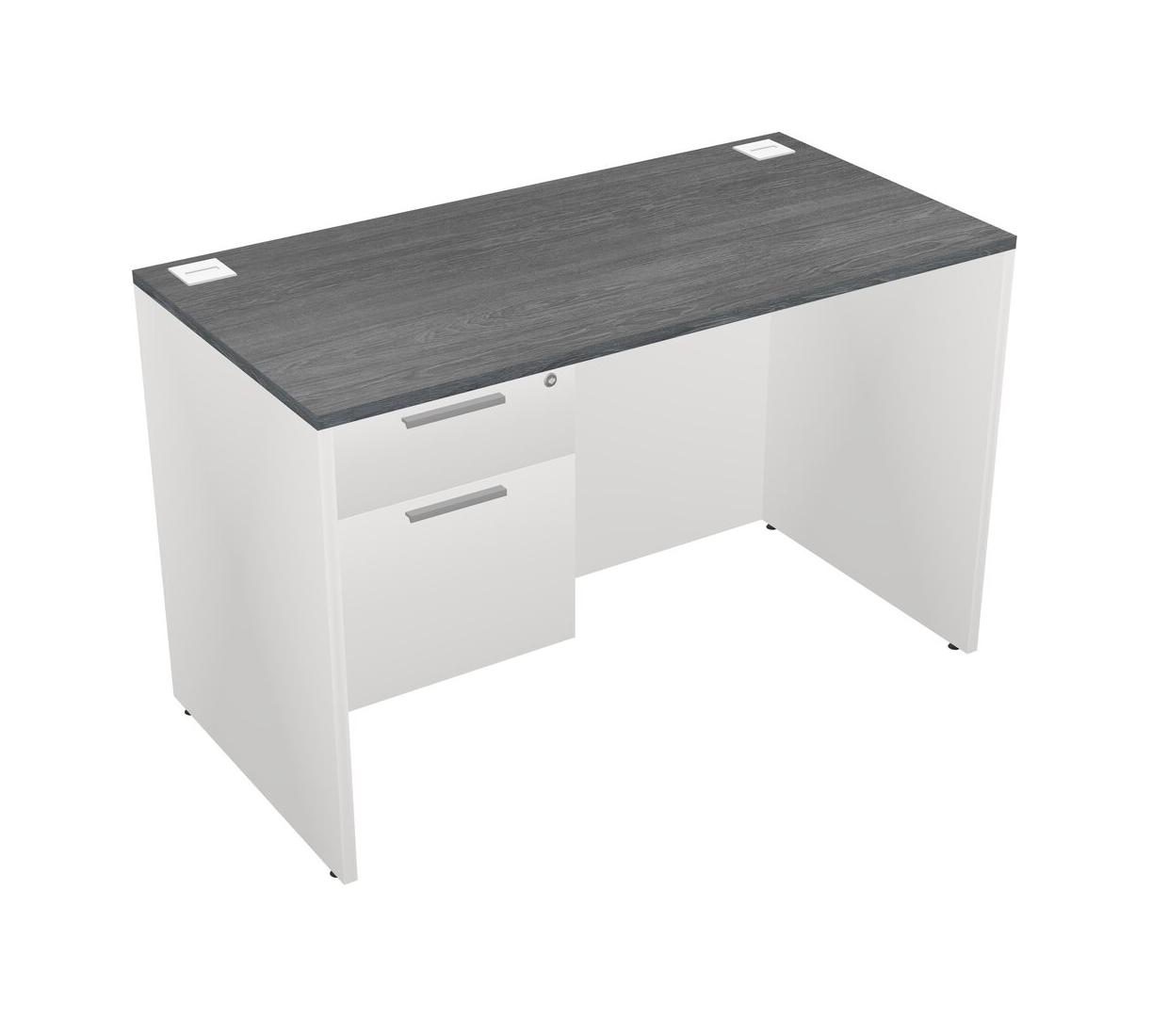 Grey Rectangular Office Desk Plus White Hanging Drawers