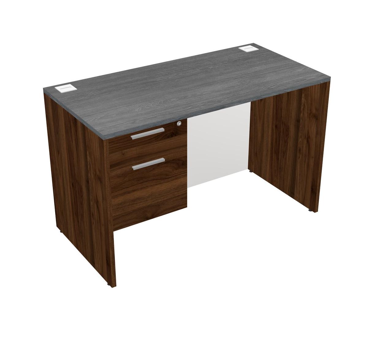 Grey Rectangular Office Desk Plus Columbia Walnut Hanging Drawers