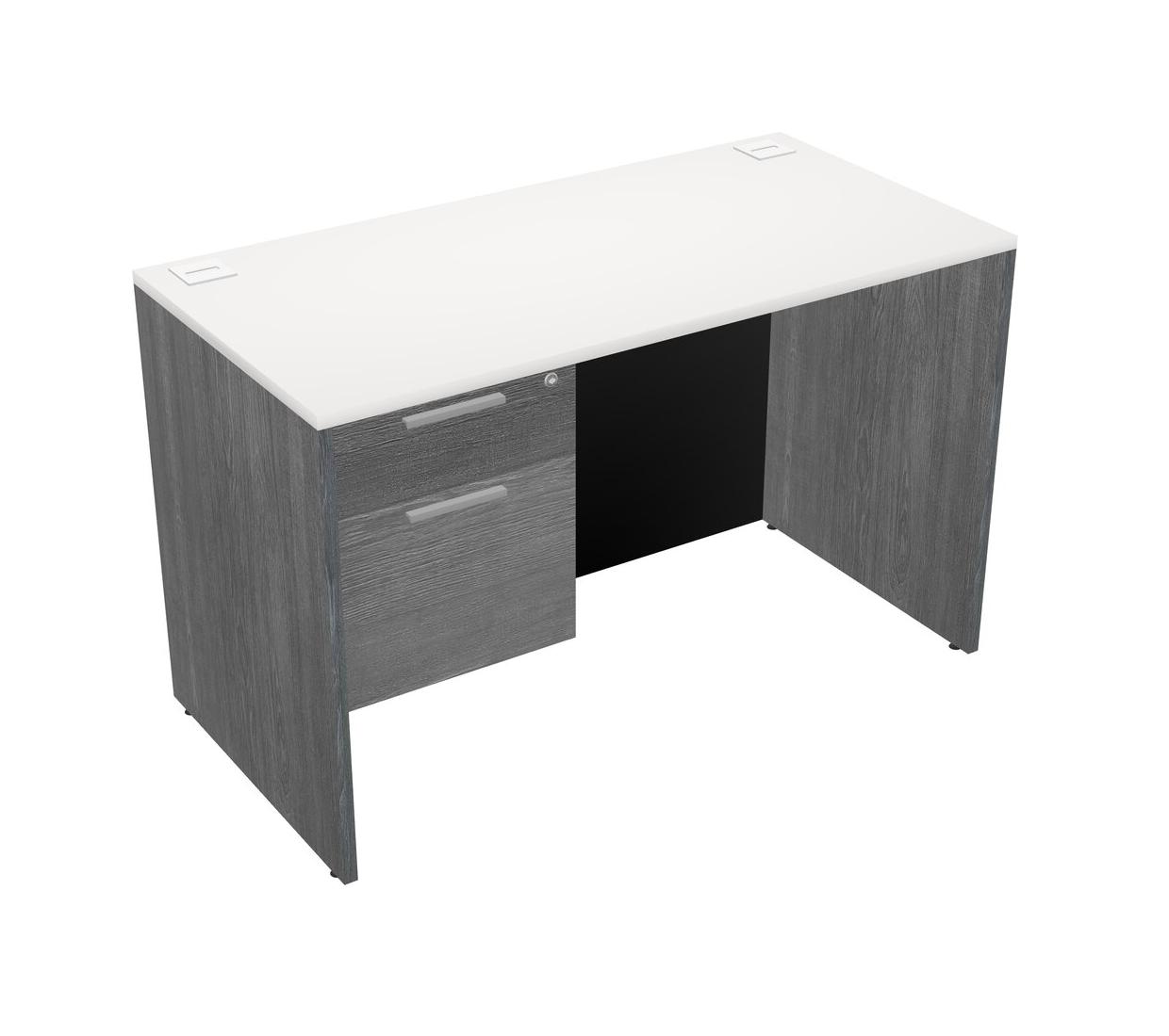 White Rectangular Office Desk Plus Grey Hanging Drawers