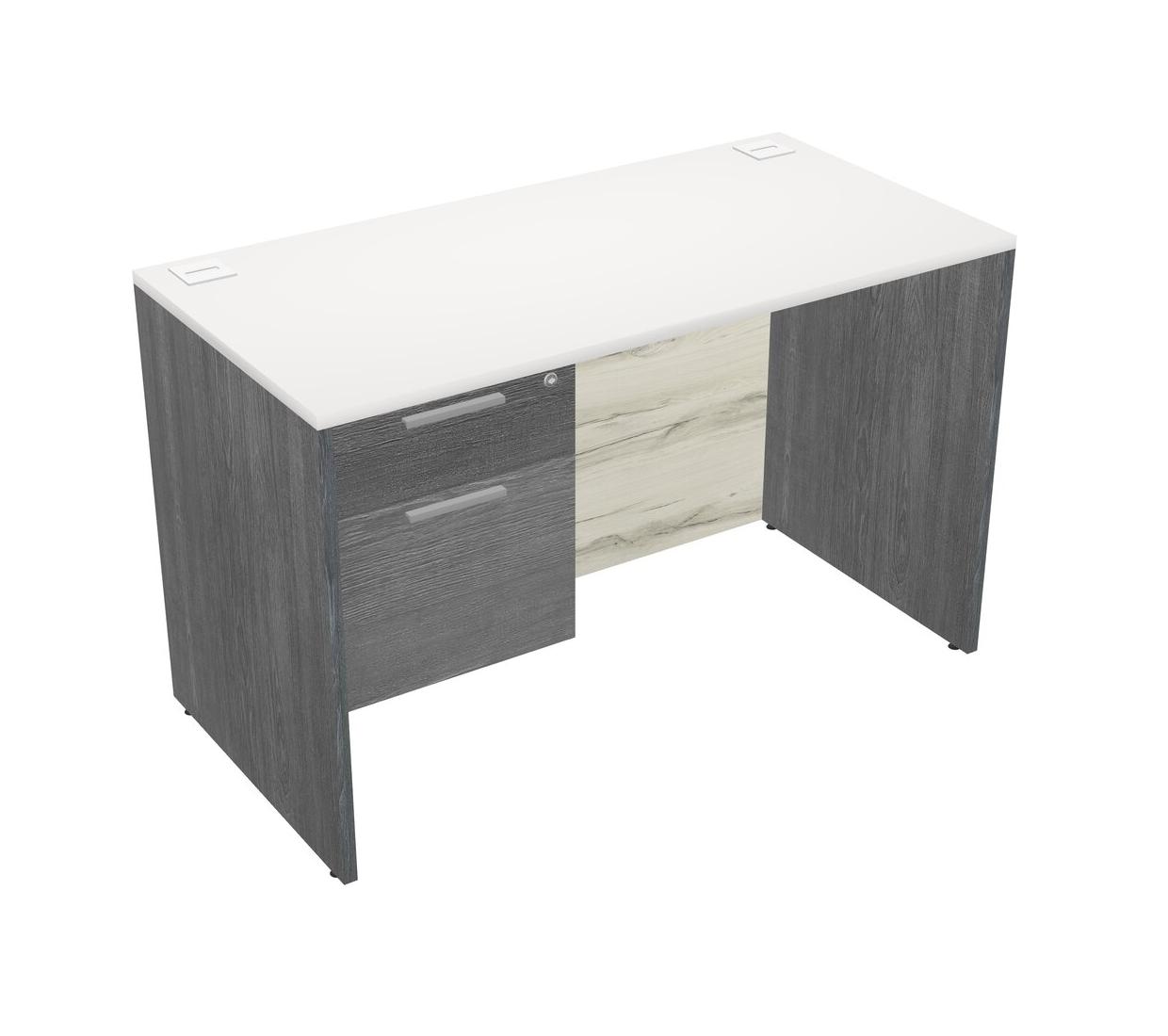 White Rectangular Office Desk Plus Grey Hanging Drawers