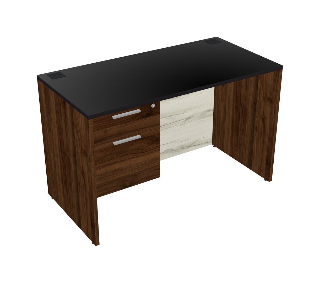 Black Rectangular Office Desk Plus Columbia Walnut Hanging Drawers