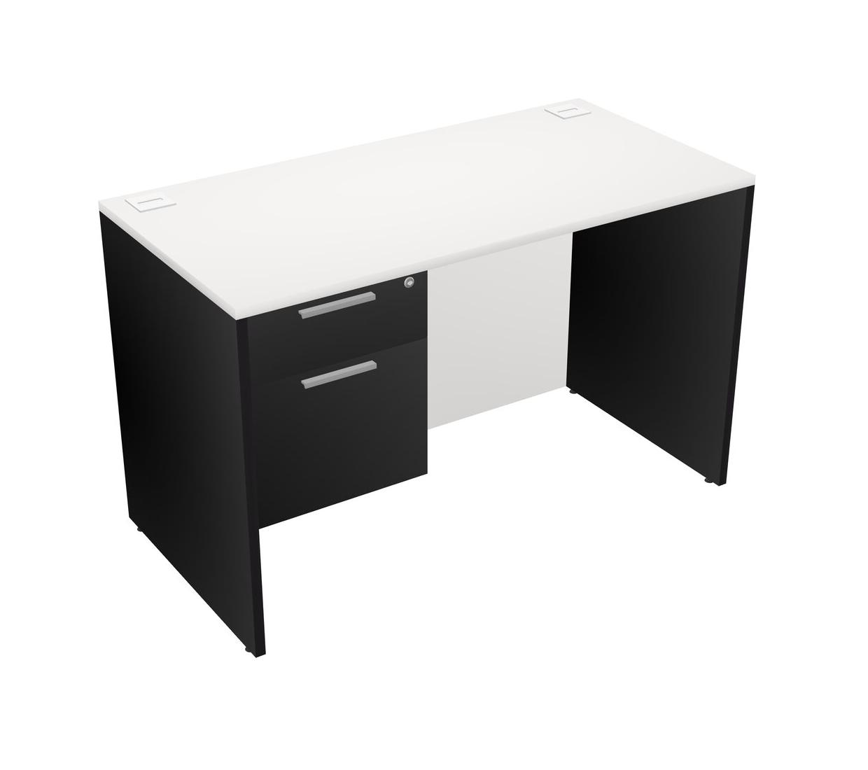 White Rectangular Office Desk Plus Black Hanging Drawers