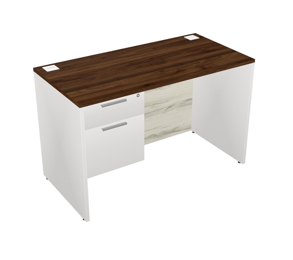 Columbia Walnut Rectangular Office Desk Plus White Hanging Drawers