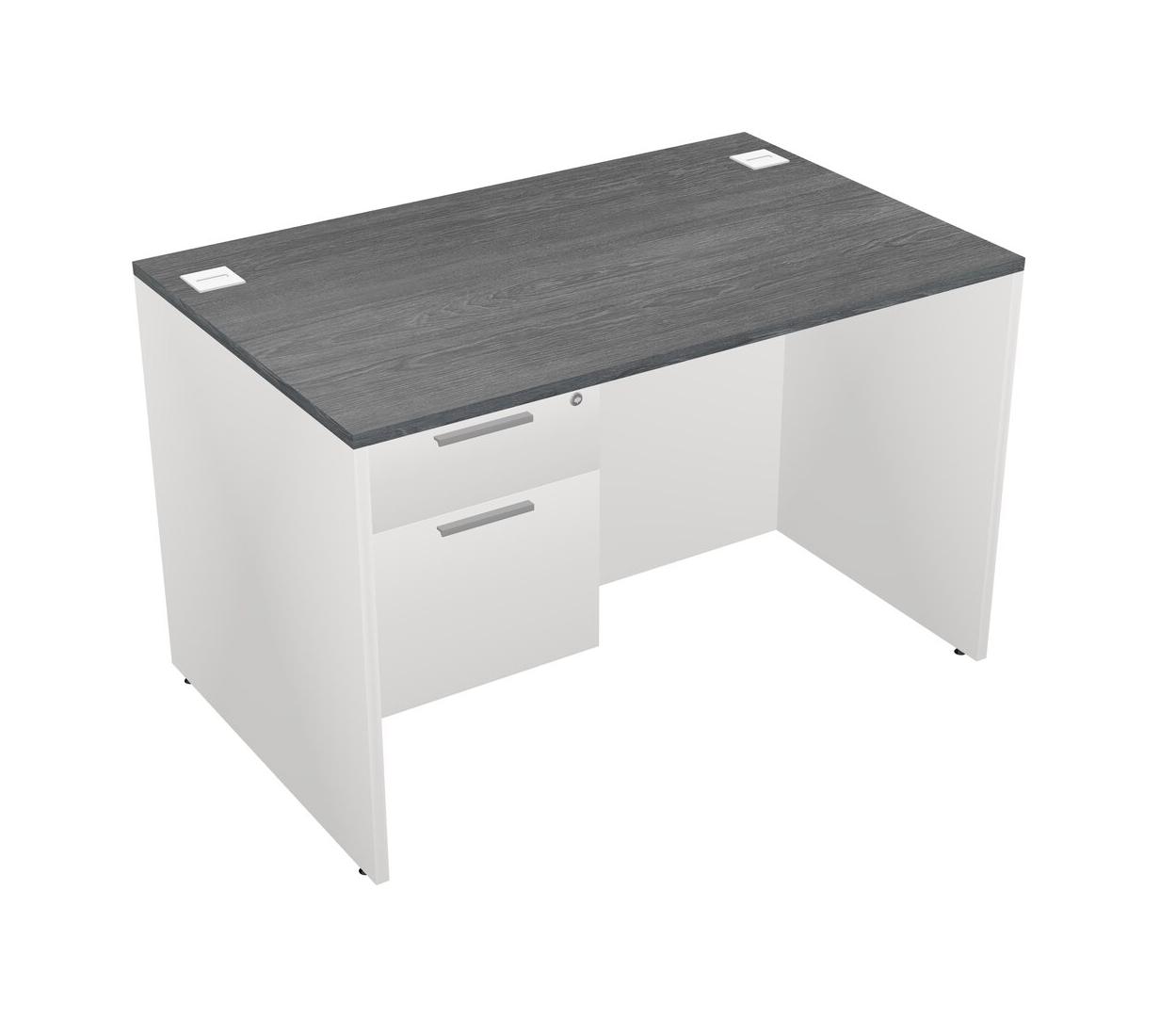 Grey Rectangular Office Desk Plus White Hanging Drawers