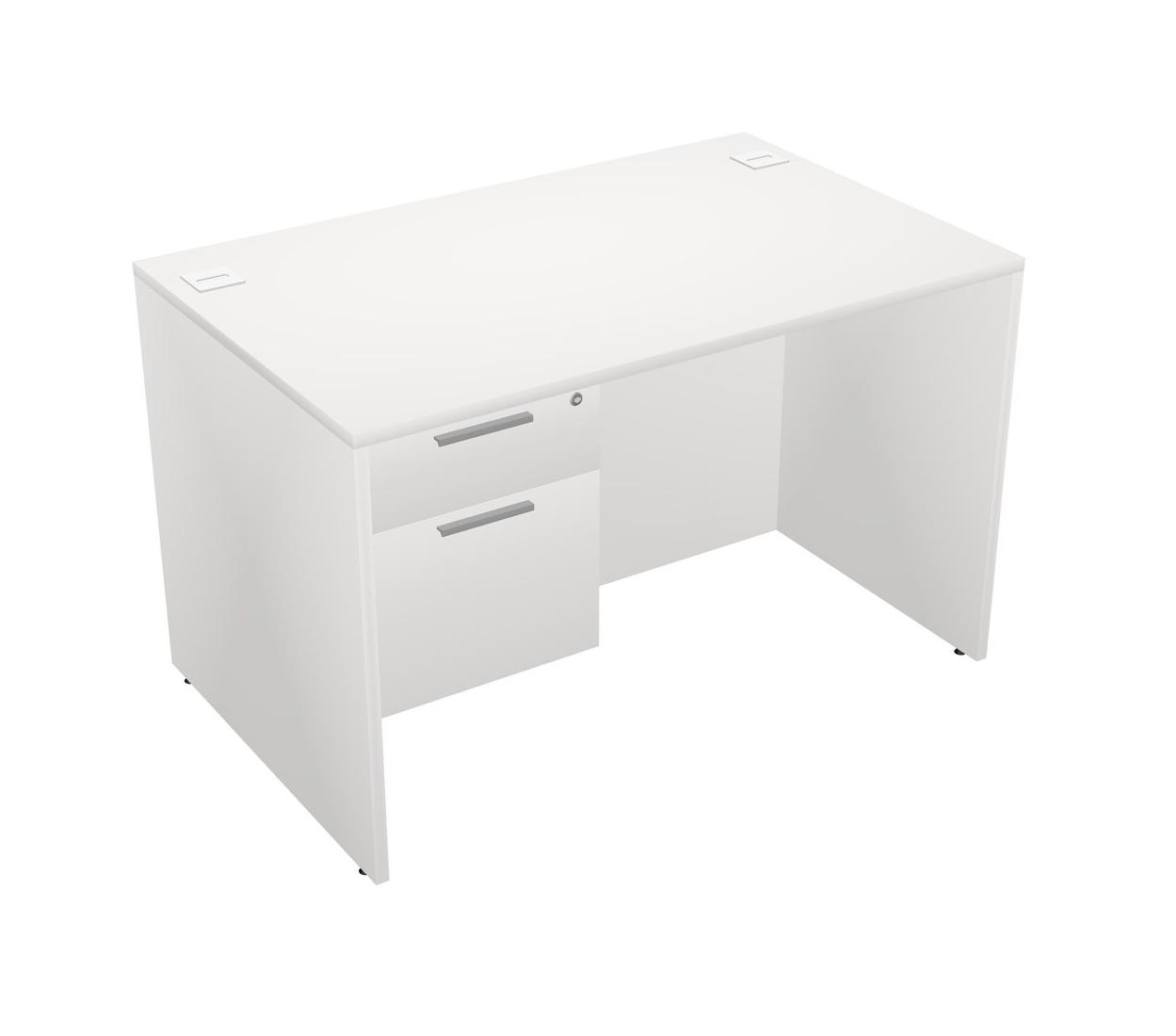 White Rectangular Office Desk Plus White Hanging Drawers