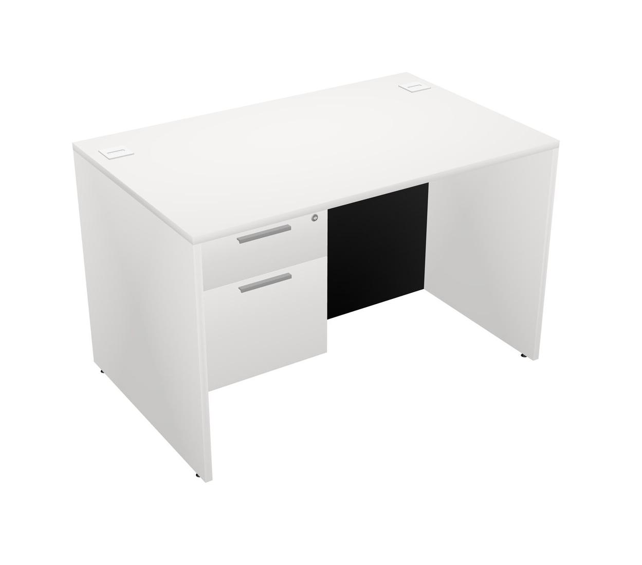 White Rectangular Office Desk Plus White Hanging Drawers
