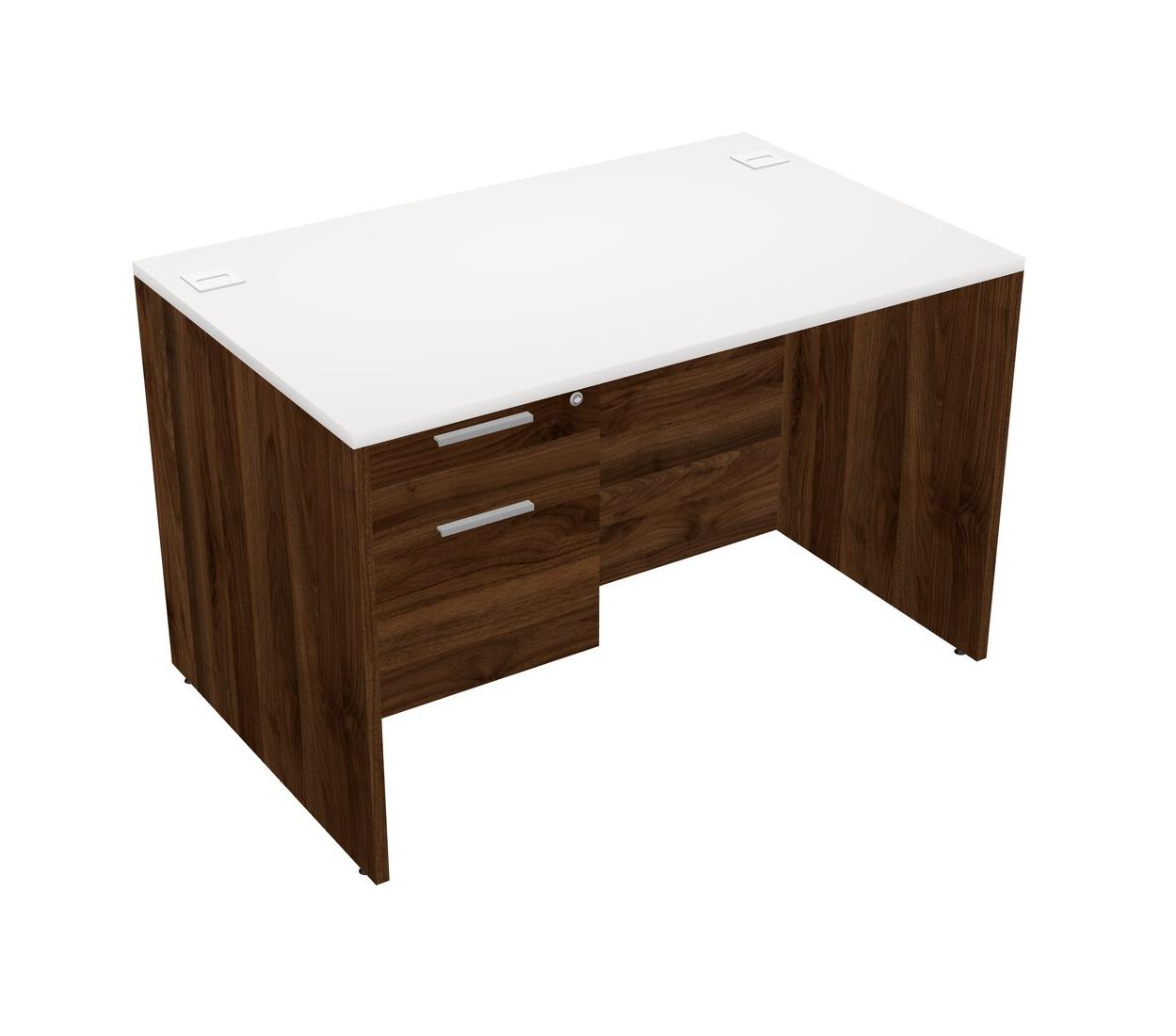 White Rectangular Office Desk Plus Columbia Walnut Hanging Drawers