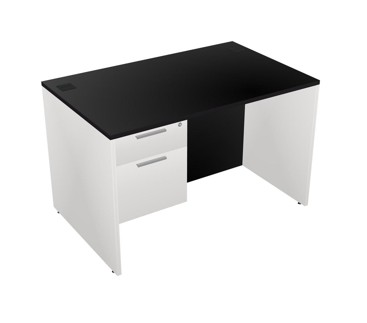 Black Rectangular Office Desk Plus White Hanging Drawers