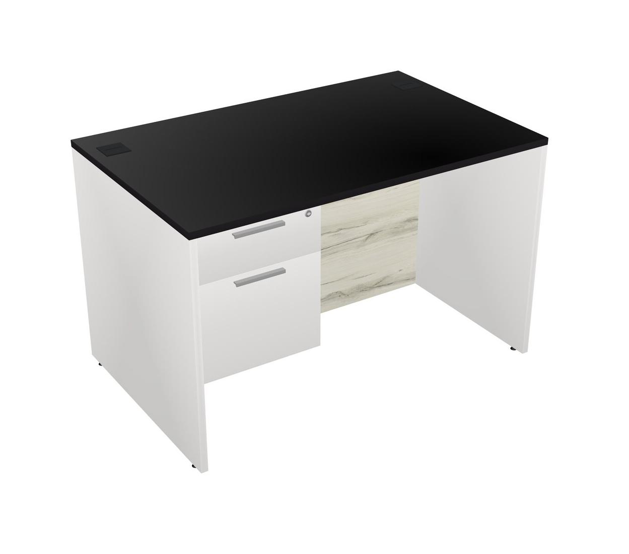 Black Rectangular Office Desk Plus White Hanging Drawers