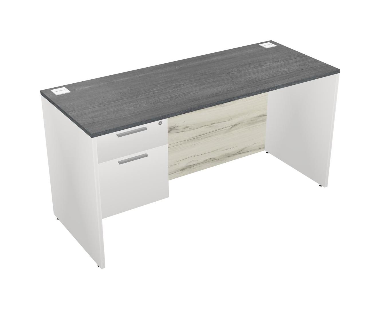 Grey Rectangular Office Desk Plus White Hanging Drawers