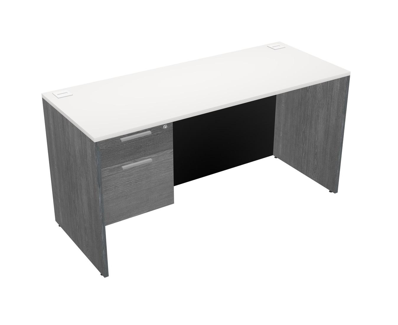 White Rectangular Office Desk Plus Grey Hanging Drawers