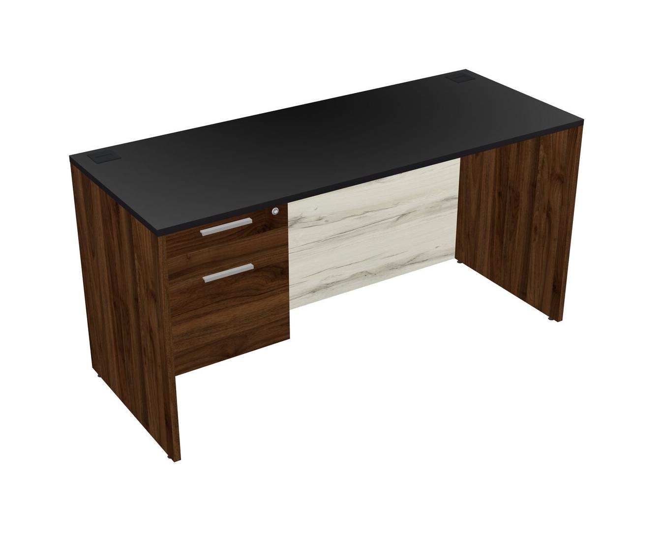 Black Rectangular Office Desk Plus Columbia Walnut Hanging Drawers