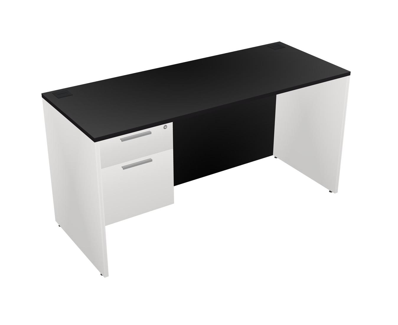 Black Rectangular Office Desk Plus White Hanging Drawers