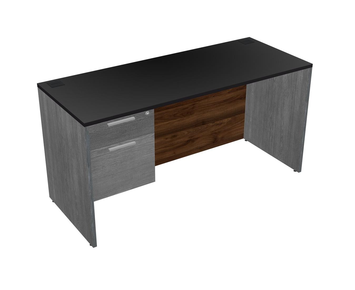 Black Rectangular Office Desk Plus Grey Hanging Drawers