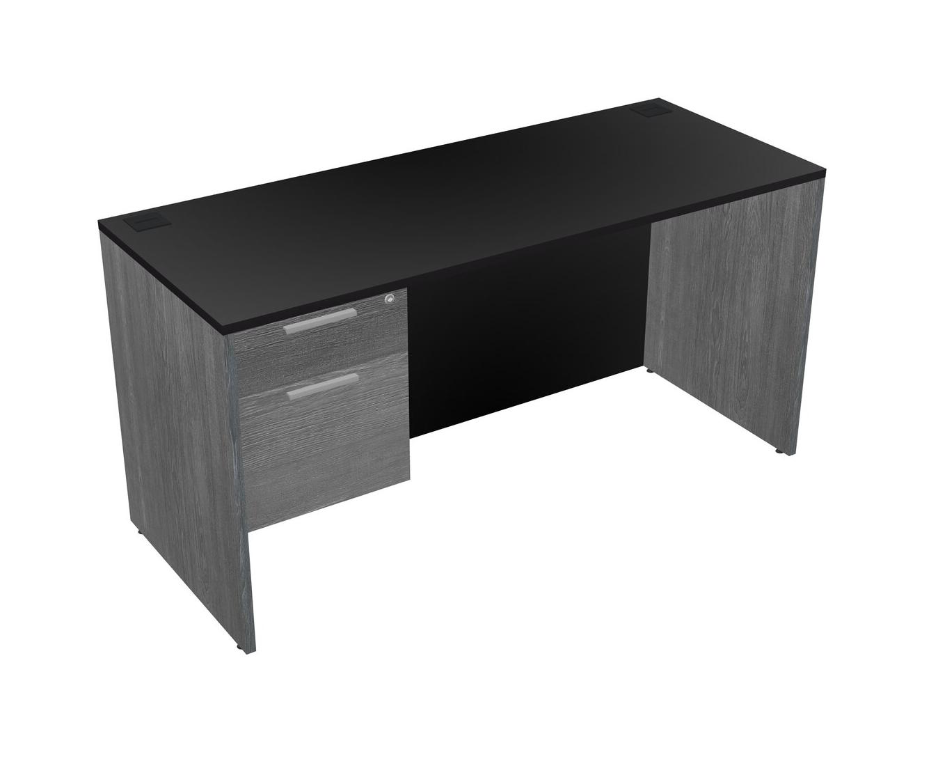 Black Rectangular Office Desk Plus Grey Hanging Drawers