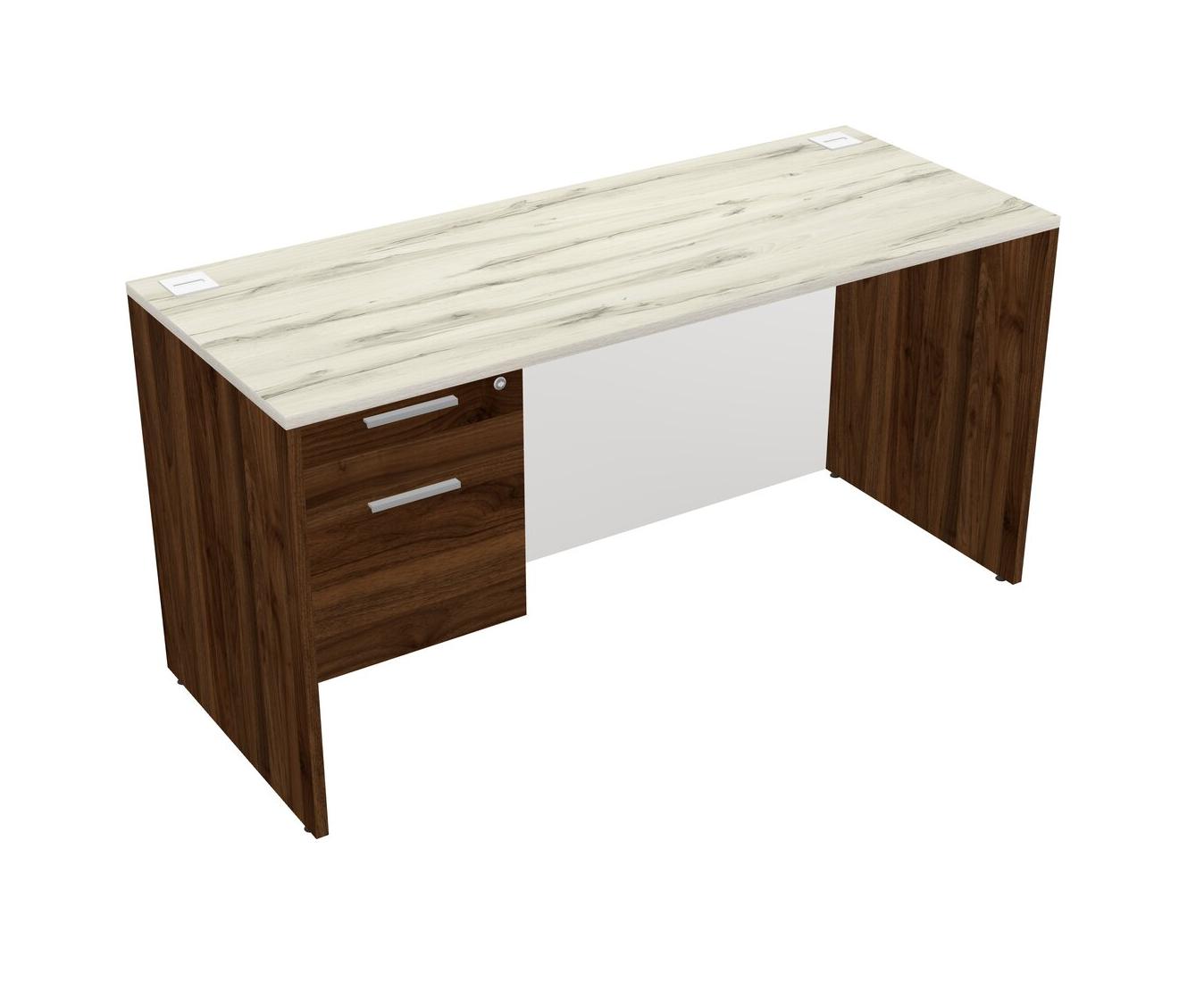Heinne Holz Rectangular Office Desk Plus Columbia Walnut Hanging Drawers