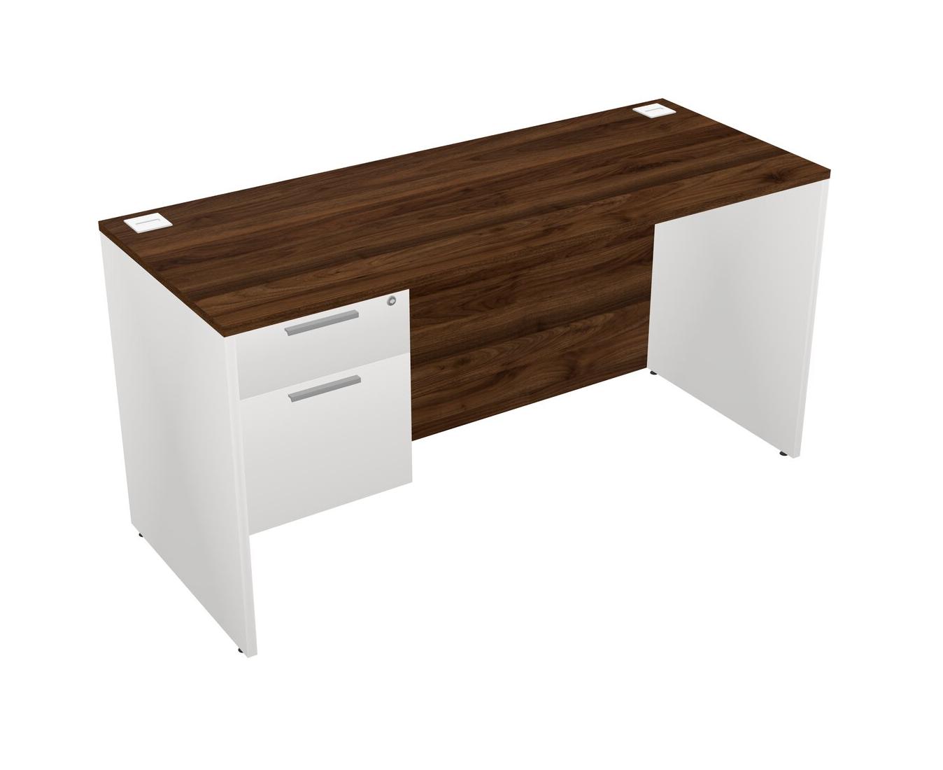 Columbia Walnut Rectangular Office Desk Plus White Hanging Drawers