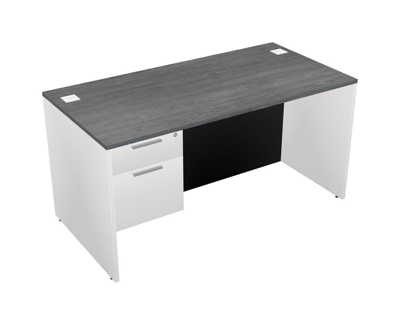 Grey Rectangular Office Desk Plus White Hanging Drawers