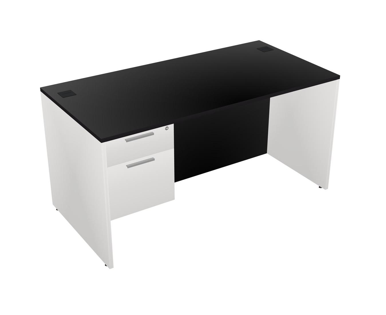 Black Rectangular Office Desk Plus White Hanging Drawers
