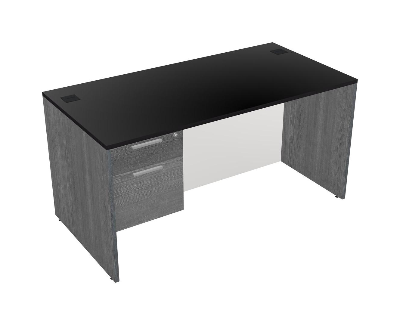Black Rectangular Office Desk Plus Grey Hanging Drawers