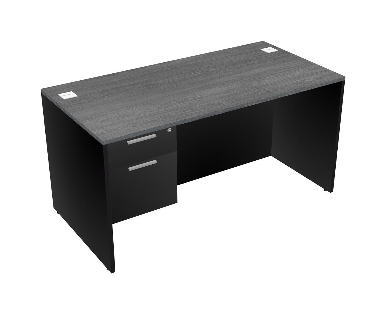 Grey Rectangular Office Desk Plus Black Hanging Drawers