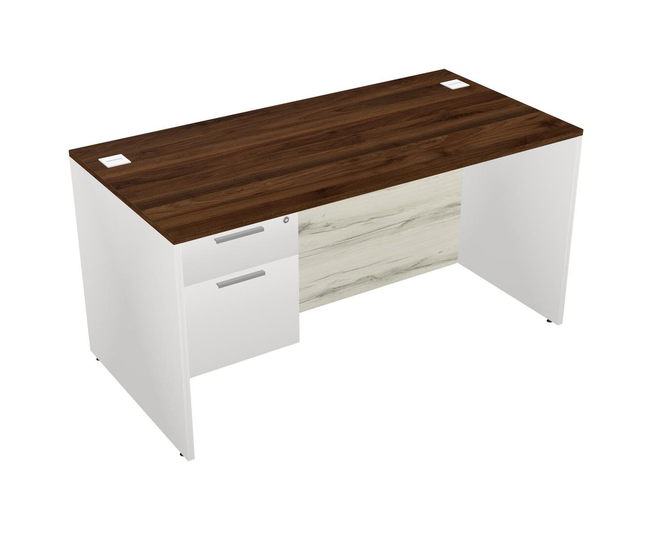 Columbia Walnut Rectangular Office Desk Plus White Hanging Drawers