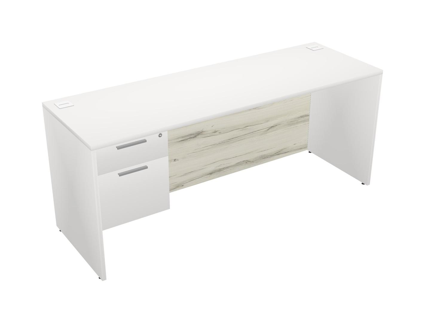 White Rectangular Office Desk Plus White Hanging Drawers