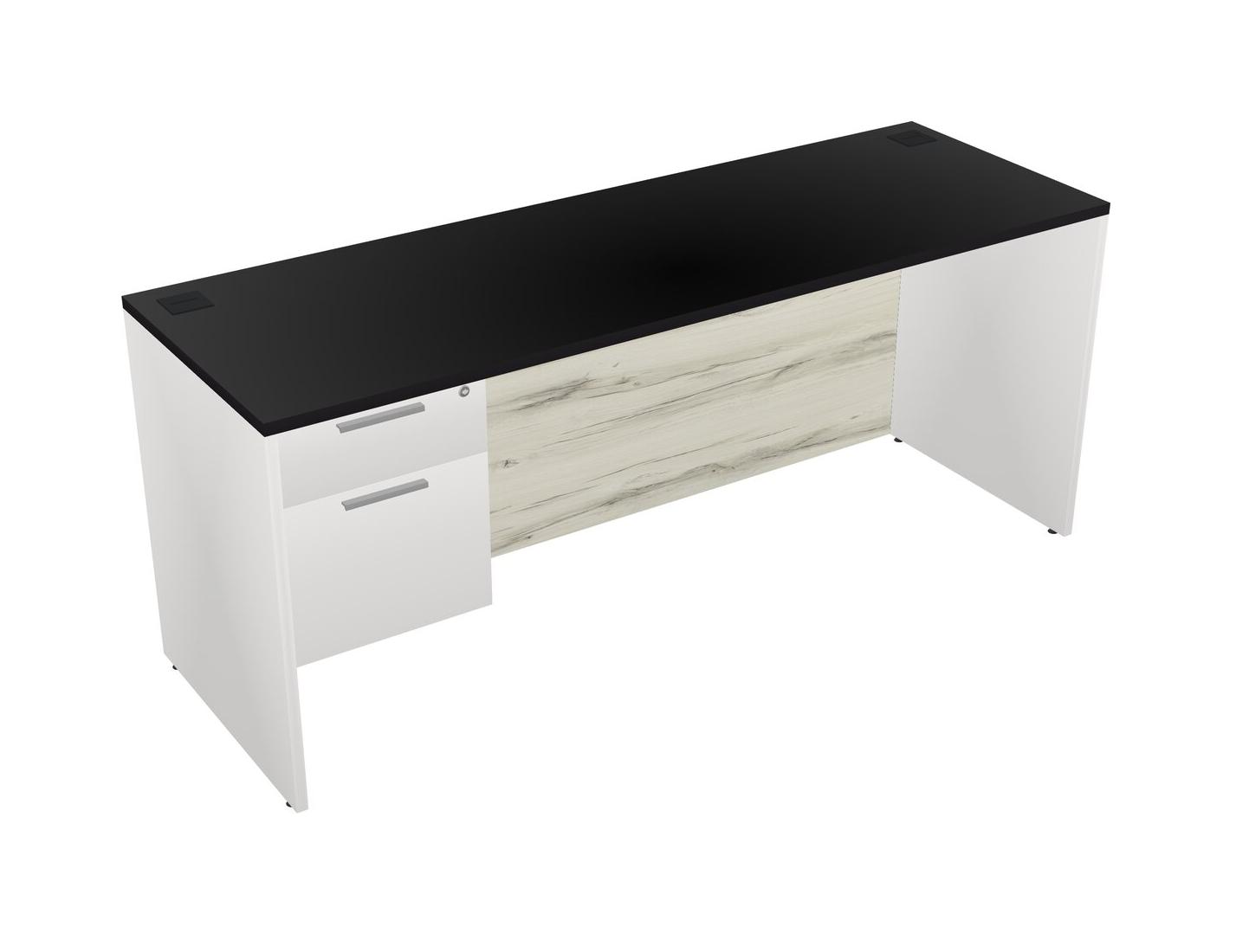 Black Rectangular Office Desk Plus White Hanging Drawers