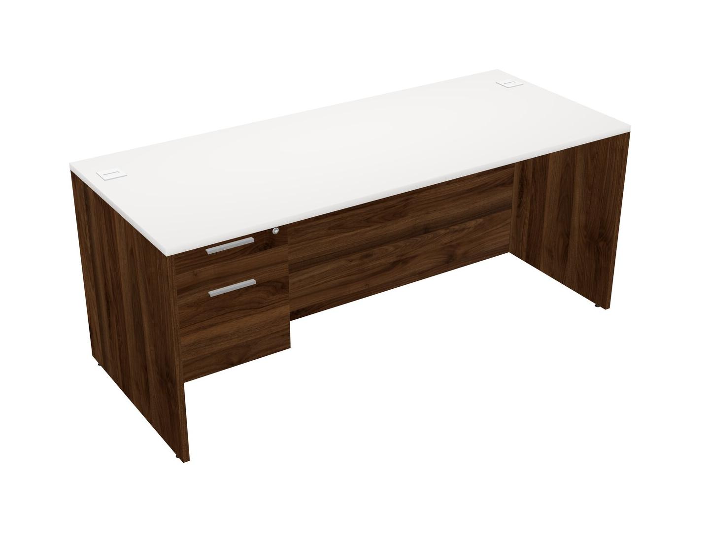 White Rectangular Office Desk Plus Columbia Walnut Hanging Drawers