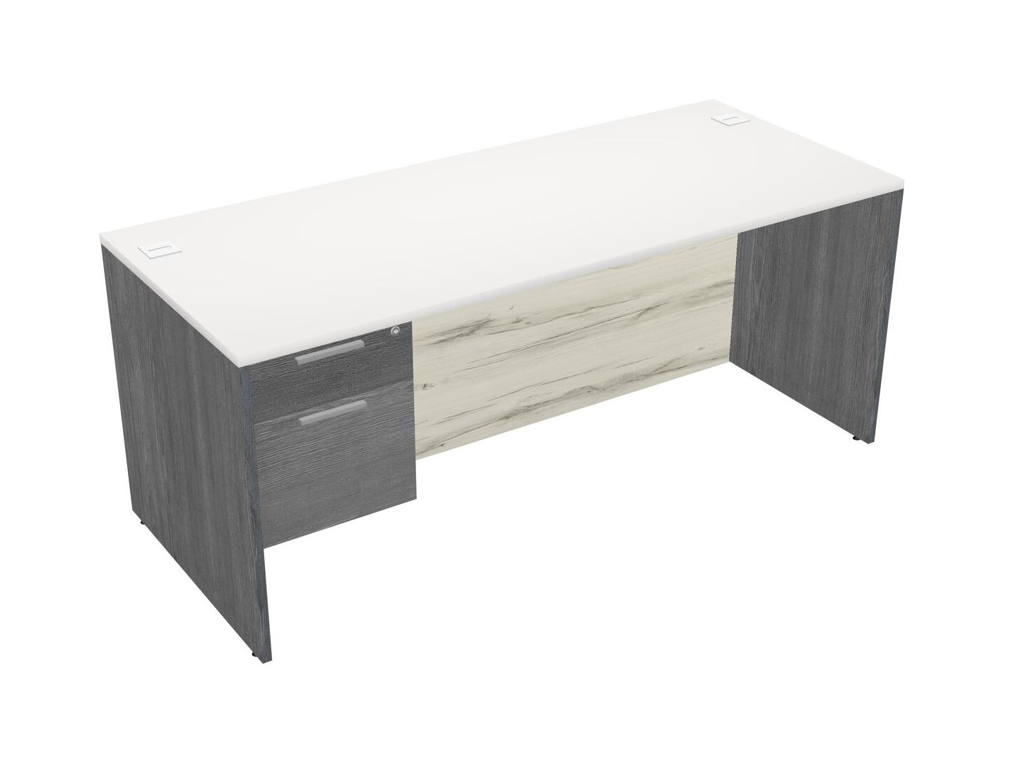 White Rectangular Office Desk Plus Grey Hanging Drawers