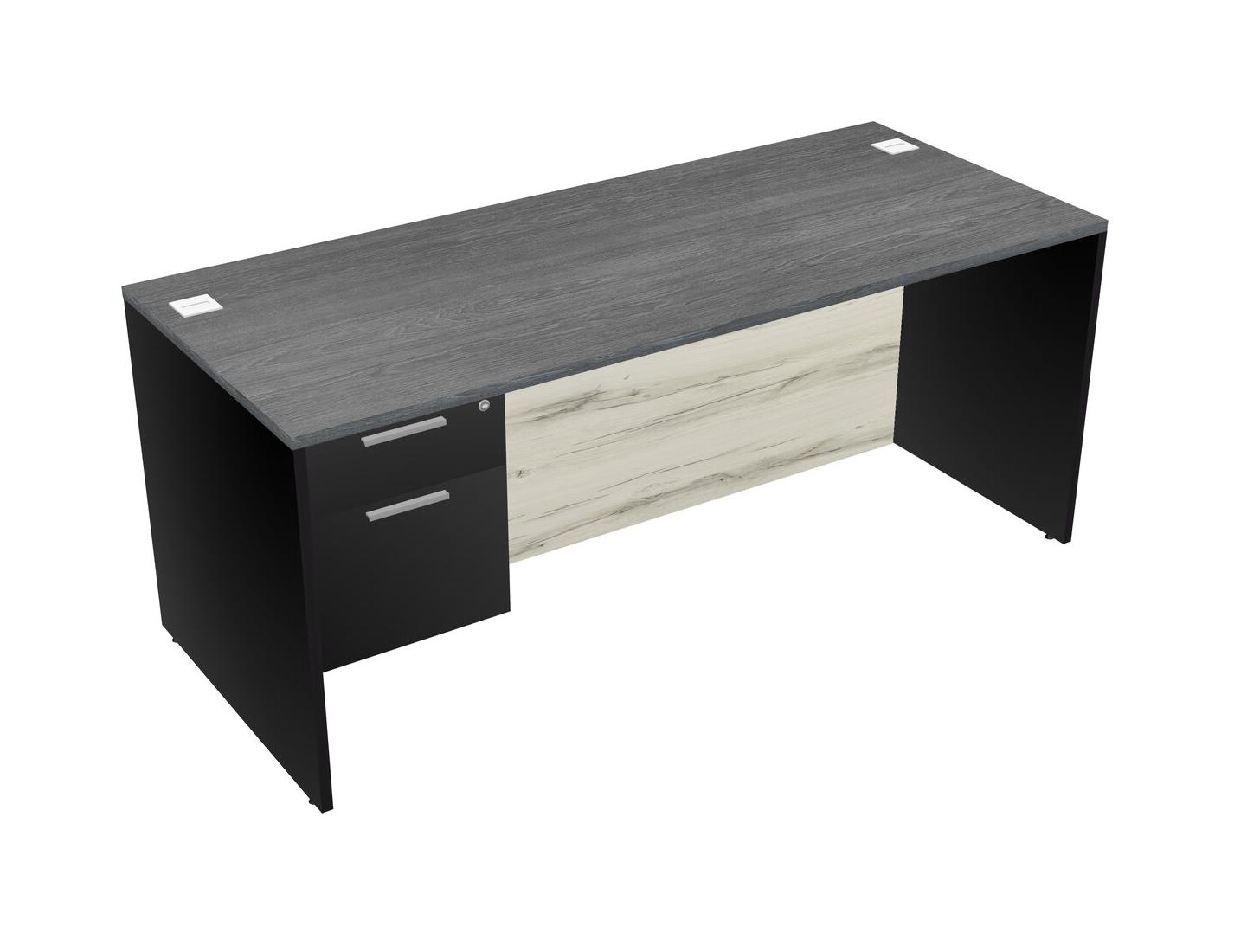 Grey Rectangular Office Desk Plus Black Hanging Drawers