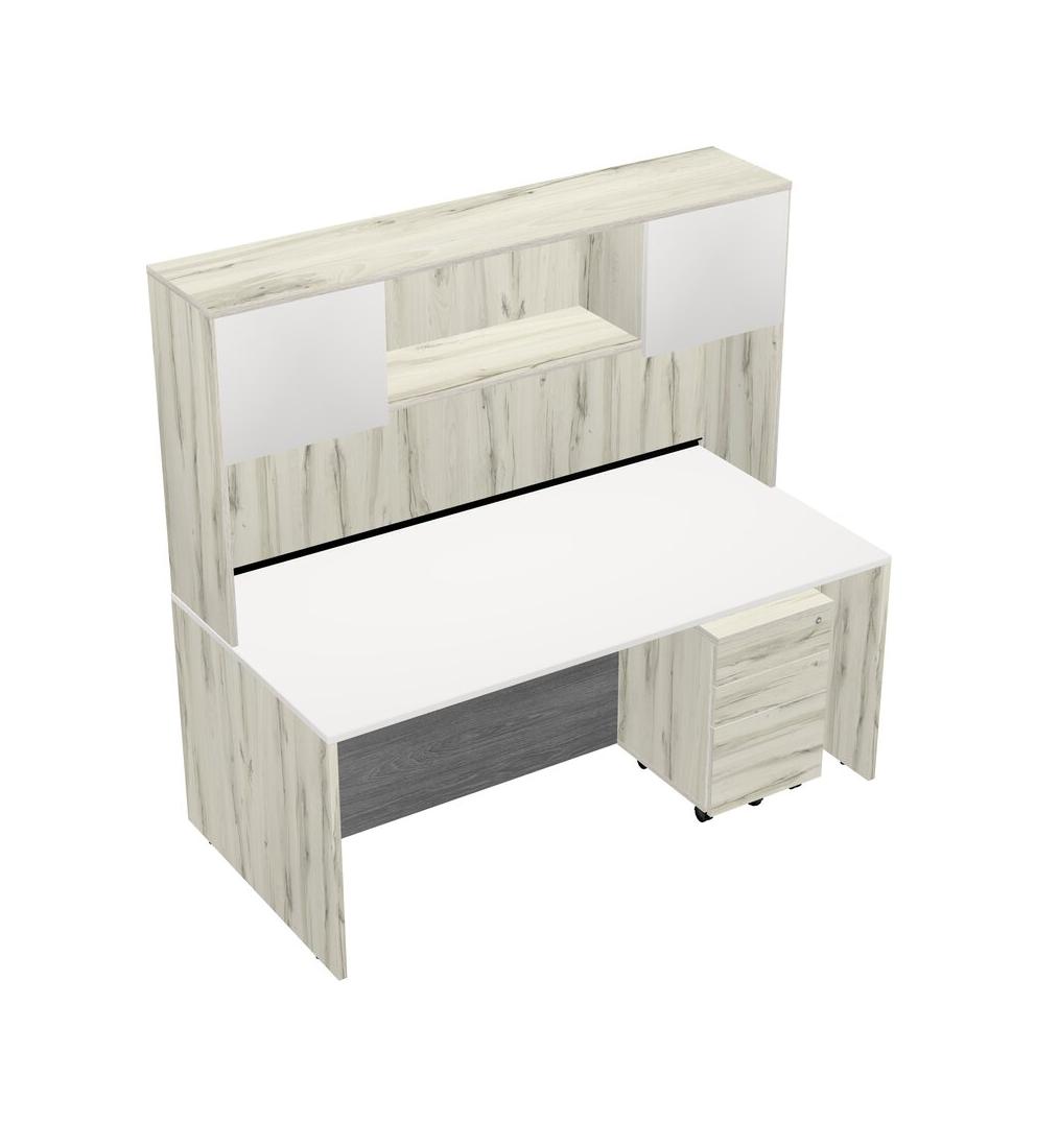 White Rectangular Office Desk Plus Heinne Holz Wooden Mobile Drawers And Heinne Holz Hutch