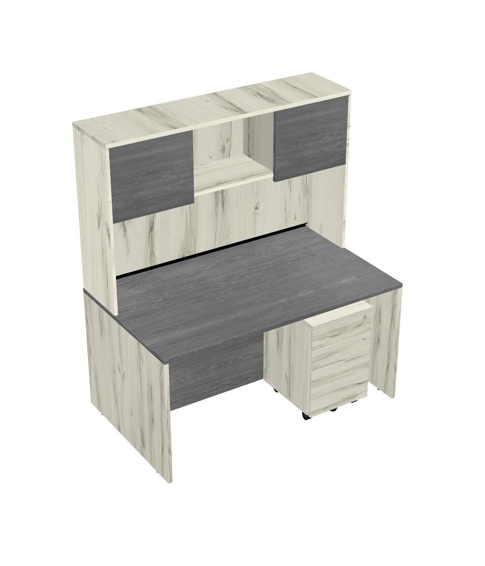 Grey Rectangular Office Desk Plus Heinne Holz Wooden Mobile Drawers And Heinne Holz Hutch