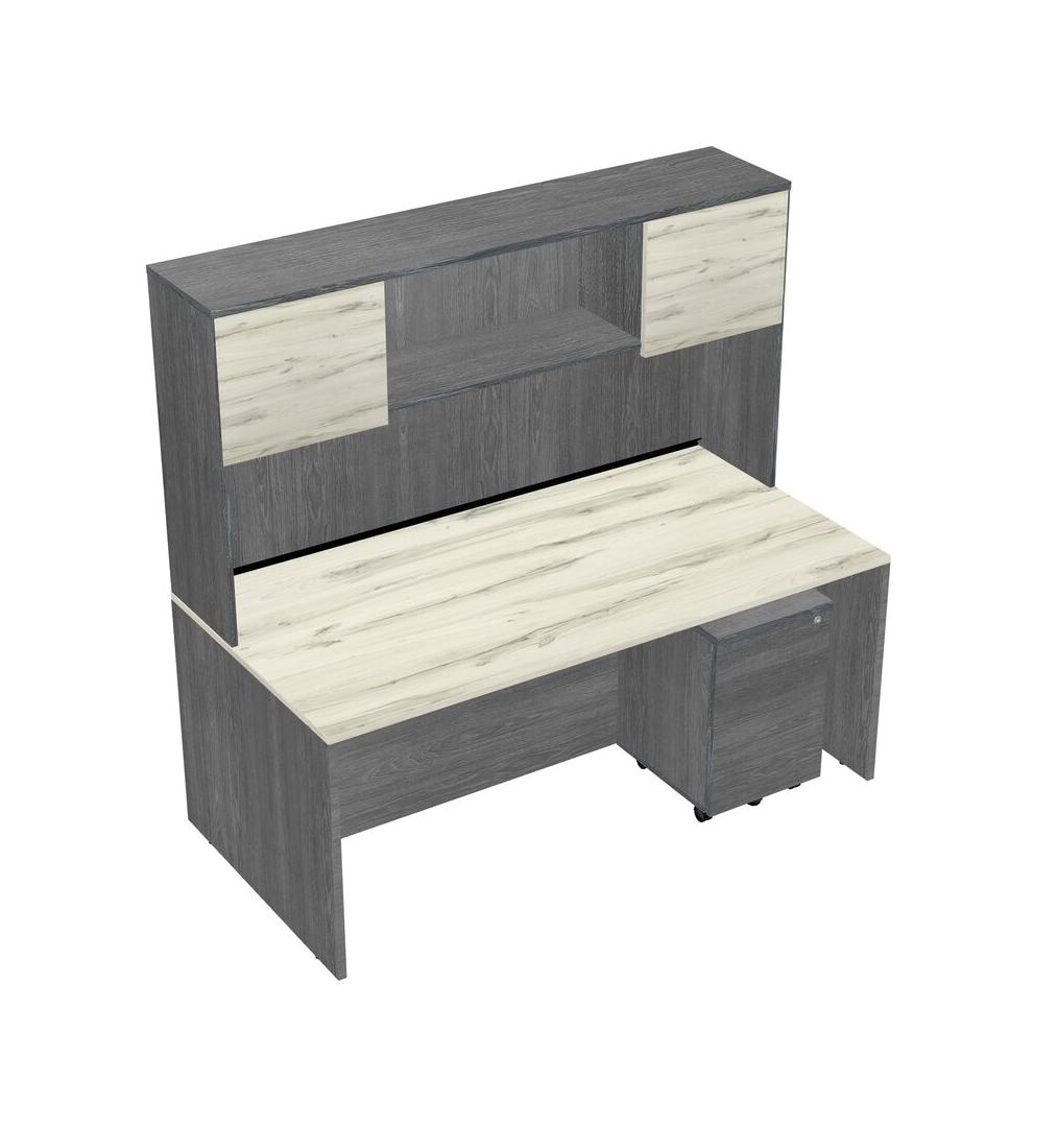 Heinne Holz Rectangular Office Desk Plus Grey Wooden Mobile Drawers And Grey Hutch