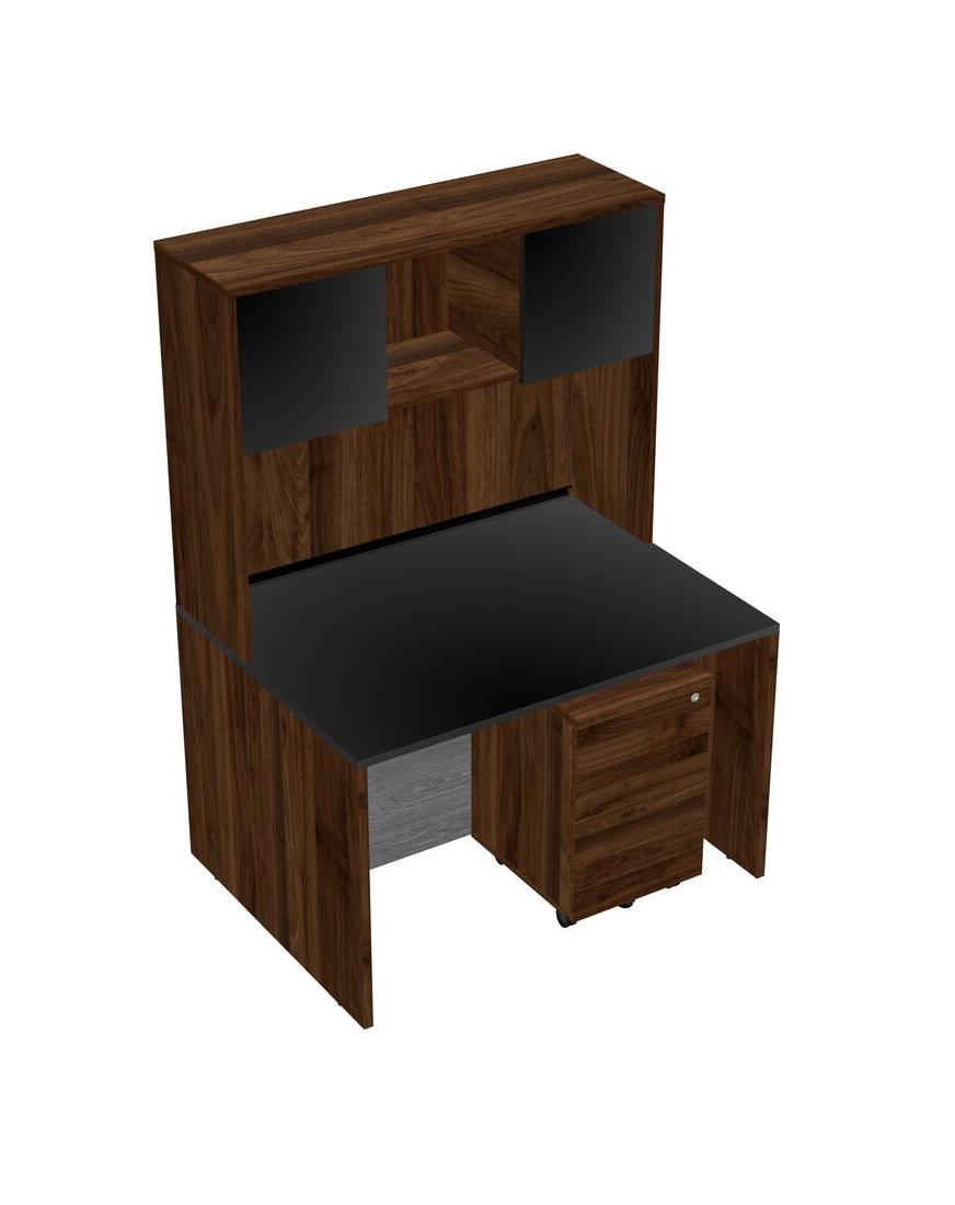 Black Rectangular Office Desk Plus Columbia Walnut Wooden Mobile Drawers And Columbia Walnut Hutch