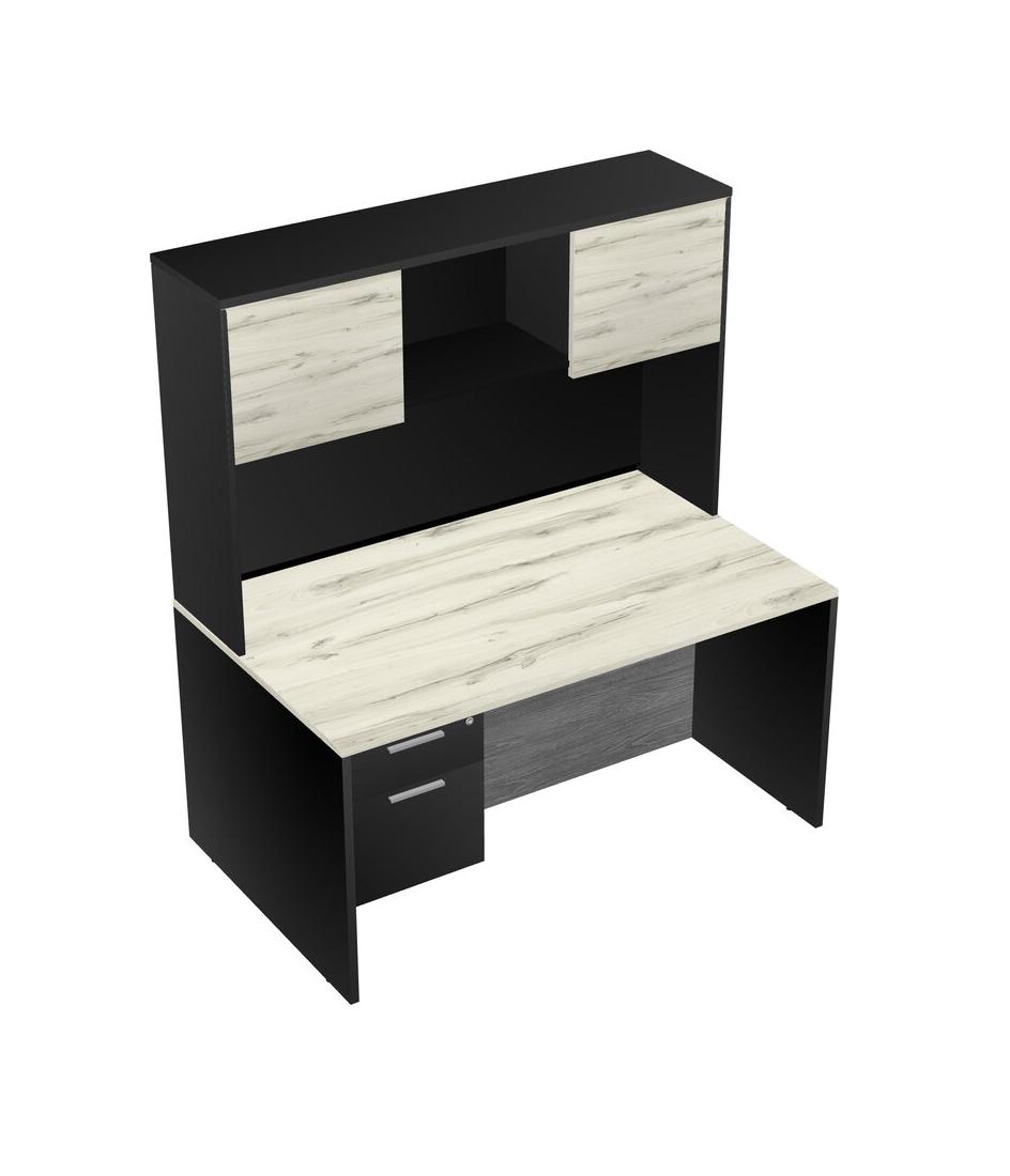 Heinne Holz Rectangular Office Desk Plus Black Hanging Drawers And Black Hutch