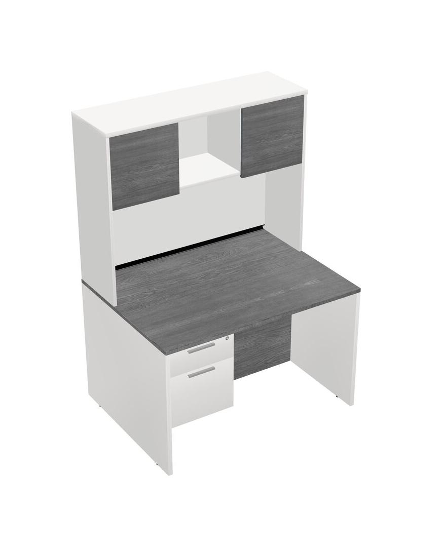 Grey Rectangular Office Desk Plus White Hanging Drawers And White Hutch