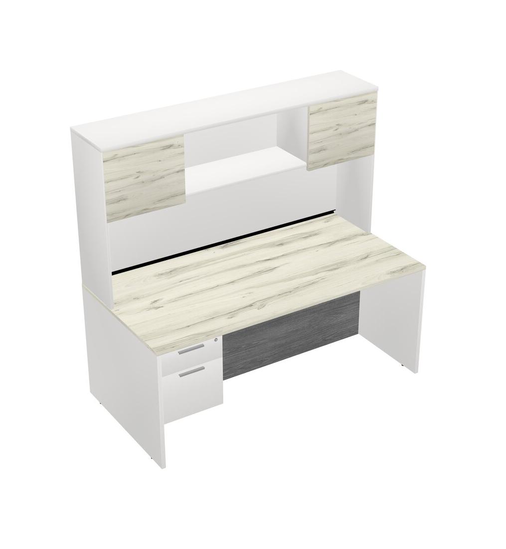 Heinne Holz Rectangular Office Desk Plus White Hanging Drawers And White Hutch