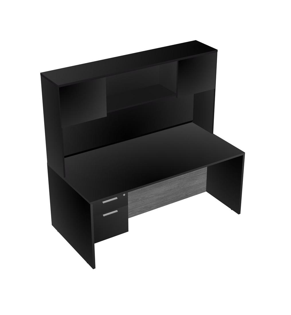 Black Rectangular Office Desk Plus Black Hanging Drawers And Black Hutch